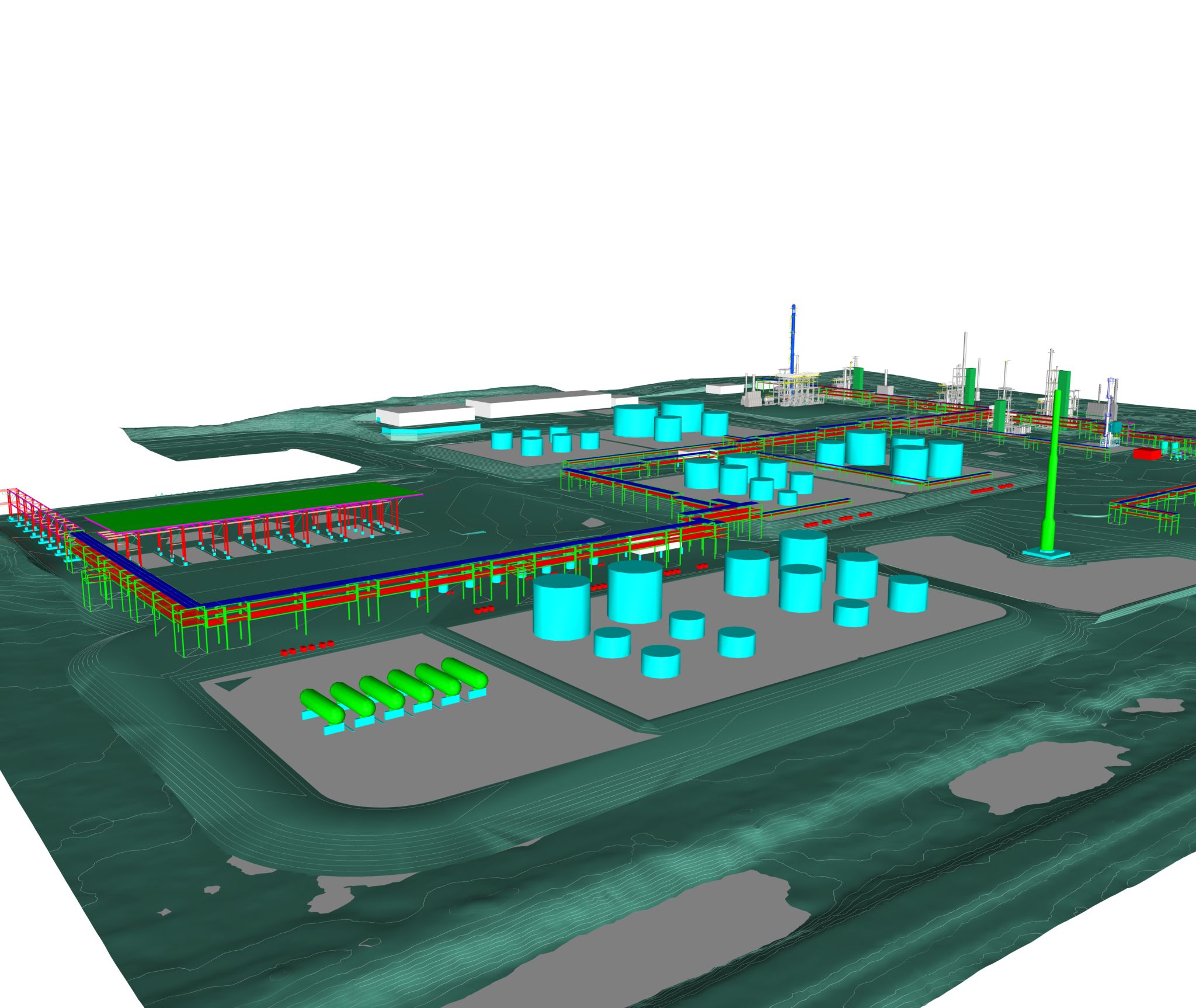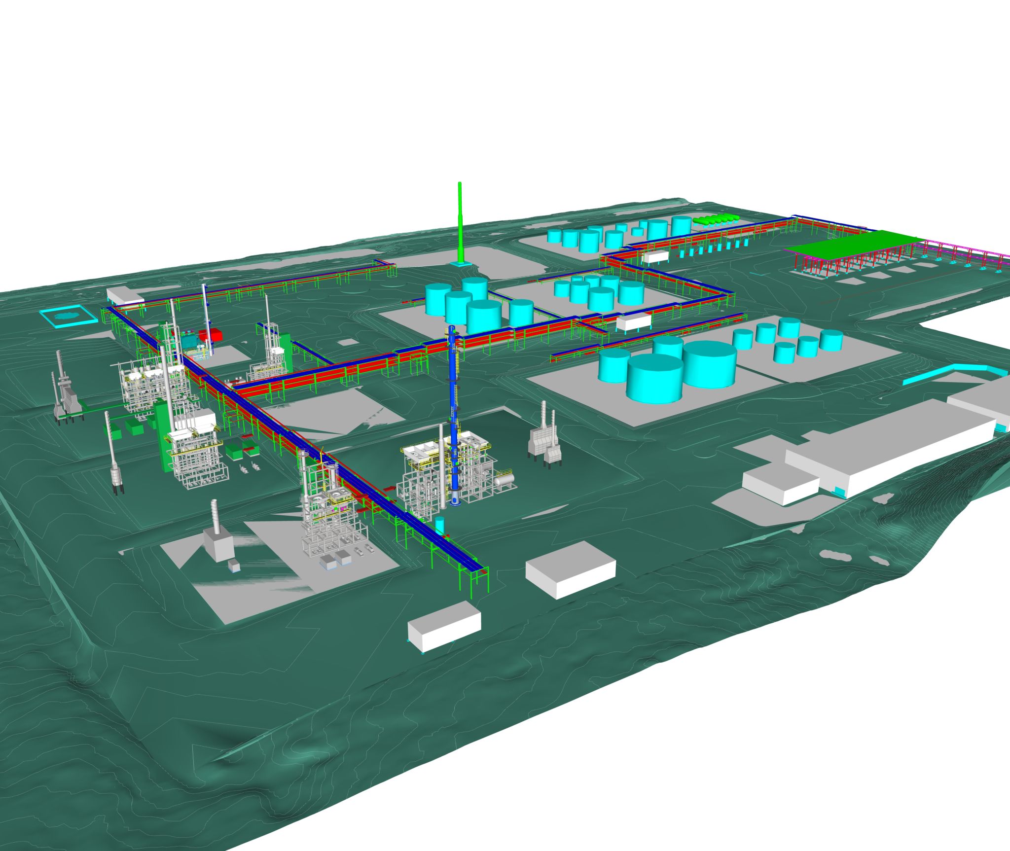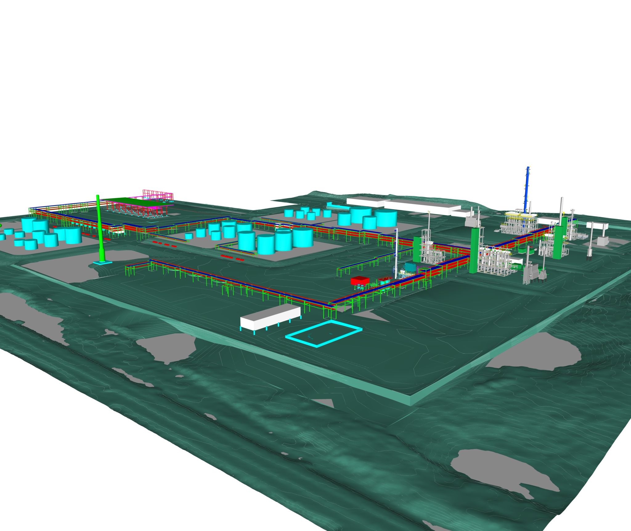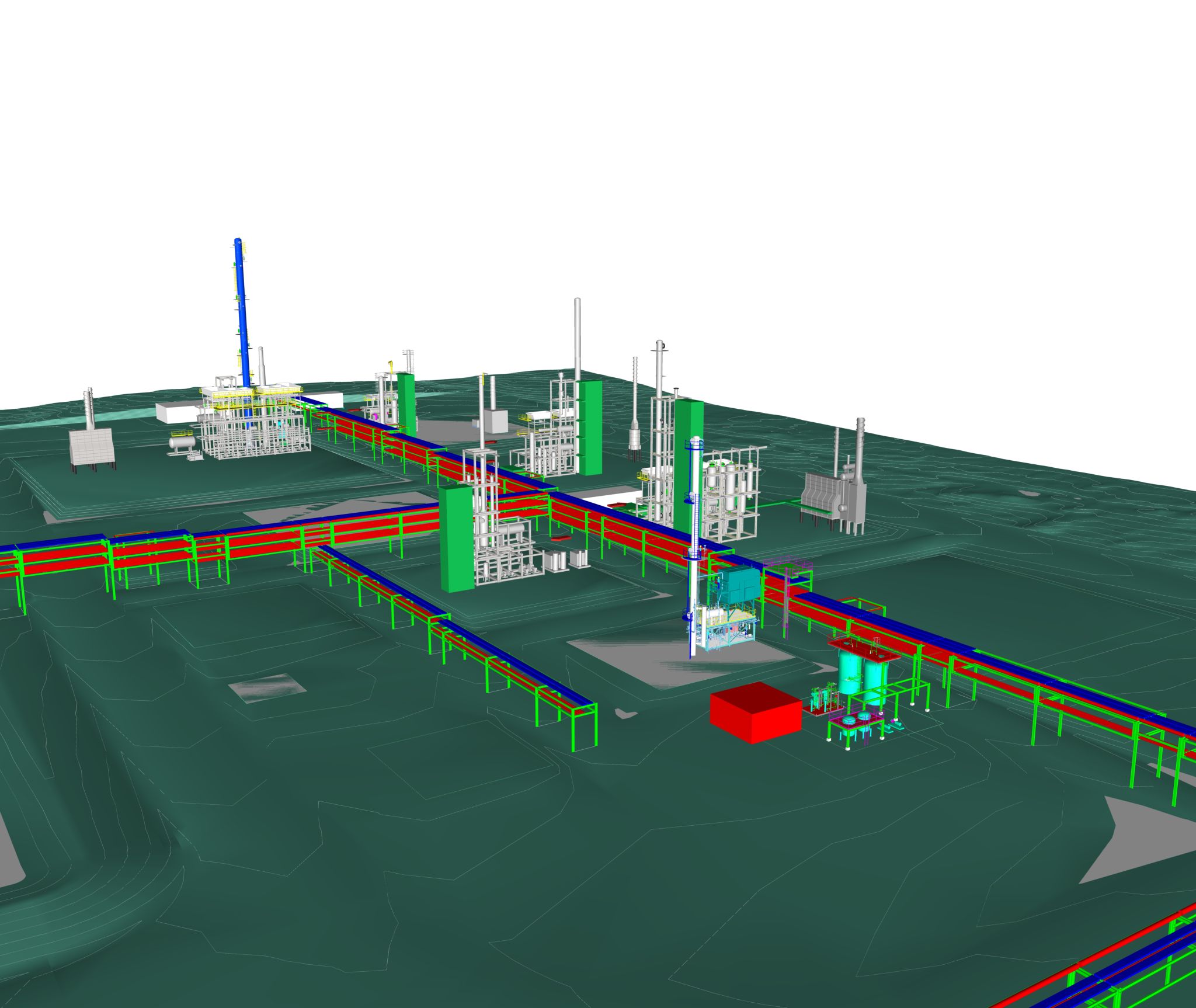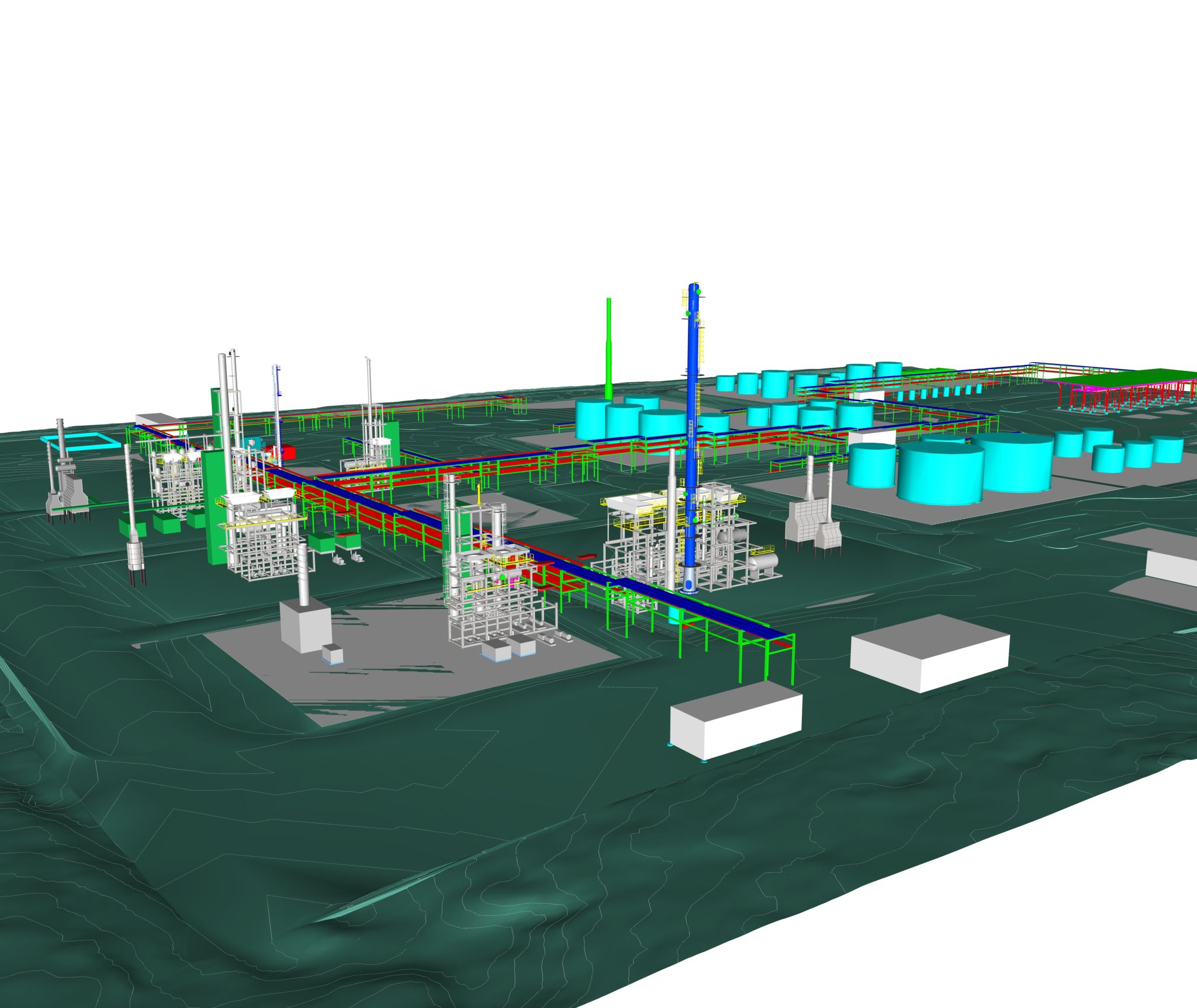 Our team took on an exciting challenge to design a new greenfield petroleum refinery, consisting of nine process units and sixteen infrastructure and utility units for a Nelson Complexity Index of 9.6. Due to investor funding deadlines, we had six months to develop overall space allocation and site requirements. Additionally, the topography of the location resulted in significant site work requirements. Despite the short timeline, the estimates for several units were brought to a +/- 10% contingency level. Unfortunately, due to the pandemic marketability for refiners the project was not funded. Even so, the experience we gained through the design process of developing an entire refinery from concept to estimate was invaluable.