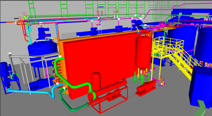 C&I was able to double production capacity with this plant expansion project. We provided detailed design engineering for the project as well as updating all files and P&IDs and performing a laser scan to set the basis for next steps. The laser scan allowed us to layout and modify the new equipment so that it would fit alongside existing equipment. We also set up the facility with the flexibility to switch piping to feed one line (old process) or two lines (new process) depending on their needs.
