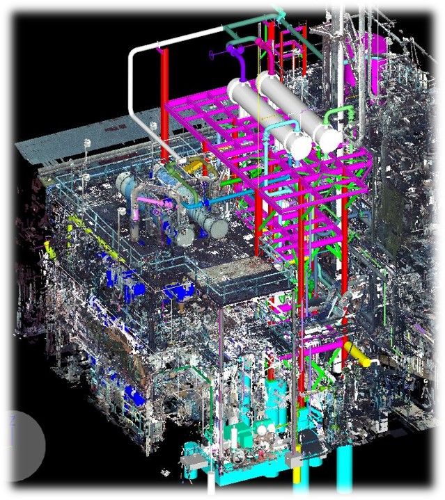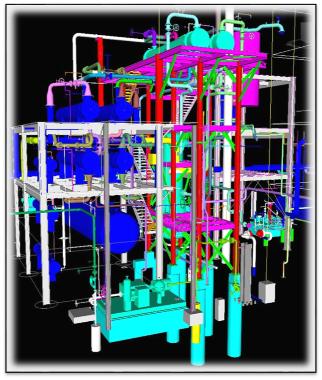 The existing unit was congested, requiring finesse in siting equipment and routing piping. This is where our expertise in retrofit design combined with the 3D modeling tool and laser scan set us up for a successful project. We were able to involve stakeholders in a constructability review early in the design process to locate several new pieces of equipment in an existing structure.